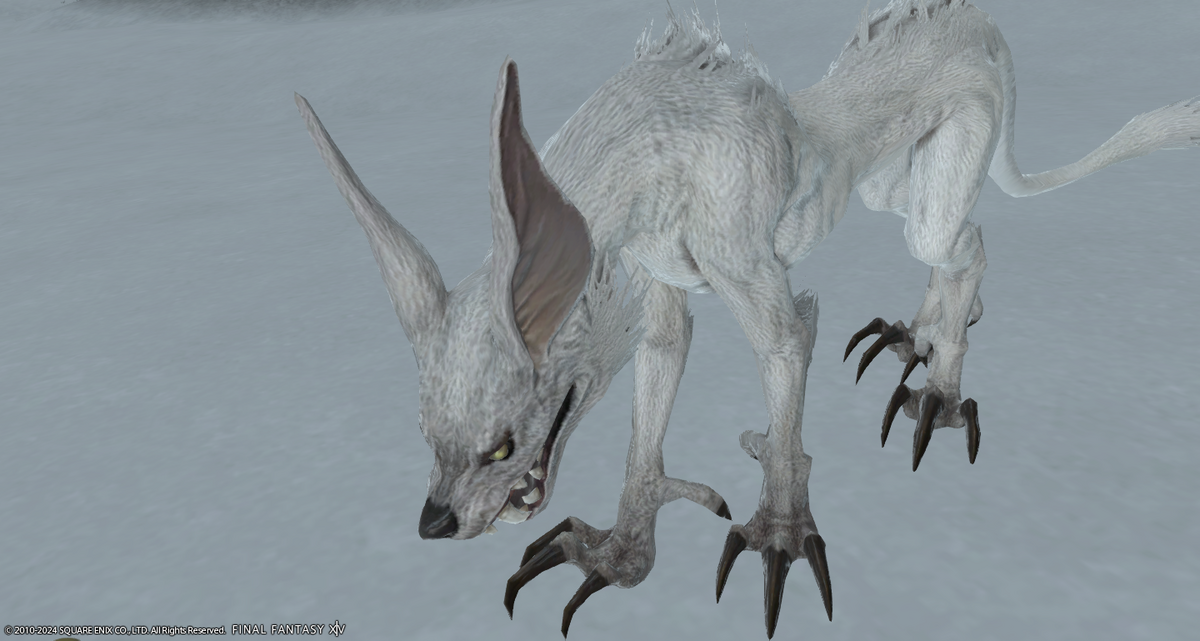 鋭い目つきと牙、たち耳
