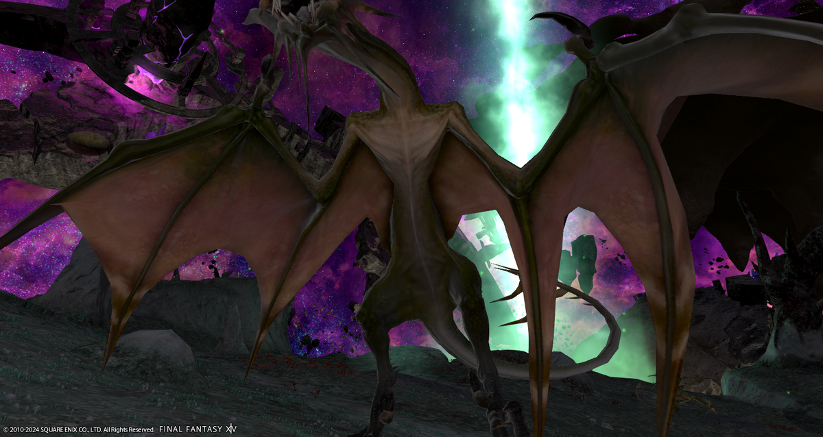 ドラゴンの頭、コウモリの羽根、ワシの脚、蛇の尾が表現されている。